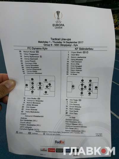 У четвер, 14-го вересня київське «Динамо» стартувало у груповому етапі Ліги Європи. На підопічних Хацкевича чекав явний аутсайдер групи албанський клуб «Скендербеу». Наставник столичного клубу залишив в запасі Шепелєва та Морозюка, натомість дав зіграти фланговому захиснику Піваричу та Дерлісу Гонсалеу, який останнім часом був не у кращих фізичних кондиціях.