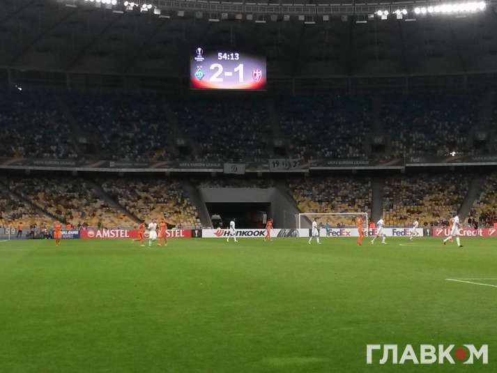 «Динамо» до перерви намагалося відновити паритет, але удари Мбокані та Циганкова у ціль не влучили і команди під свист вболівальників на адресу господарів поля пішли на перерву. Чесно кажучи, доволі несподіваний результат першої половини гри. Втім, у перерві тренерський штаб столичного клубу провів «теплу» бесіду з гравцями і вже у другому таймі вболівальники на НСК побачили зовсім інше «Динамо».