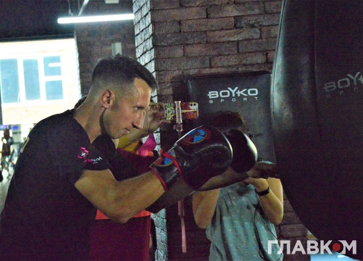 «Мені шкода грушу і аж самому боляче, коли він її пробиває», - спостерігаючи за роботою Сіренка над ударами, жартував Стаховський. Після чого повторював ті самі дії сам. Особливо важко й десь незграбно Сергій ухилявся від груші-маятника. Але як для людини, яка спробувала себе в цьому амплуа вперше, то й не дивно.