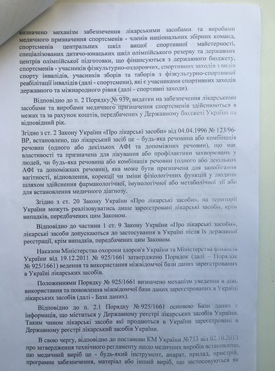Повинен сказати, що ще в 2014 році Жданов видав розпорядження про призупинення закупівлі ліків. Саме через допінгові скандали, зав’язані на придбанні біологічно активних добавок. Розблокувалася закупівля лише після того, як міністр видав наказ, у якому чітко передбачив, що ліки в разі необхідності купуються з дозволу першого заступника міністра Гоцула чи інших заступників відповідно до розподілу повноважень. Процес Жданов взяв під особистий контроль. Заявки на закупівлі до нас надходили разом із доповідною міністра. Зрозуміло, що вміст заявки – на повній відповідальності лікаря і головного тренера збірної, а контроль покладався на держтренера і головного лікаря.