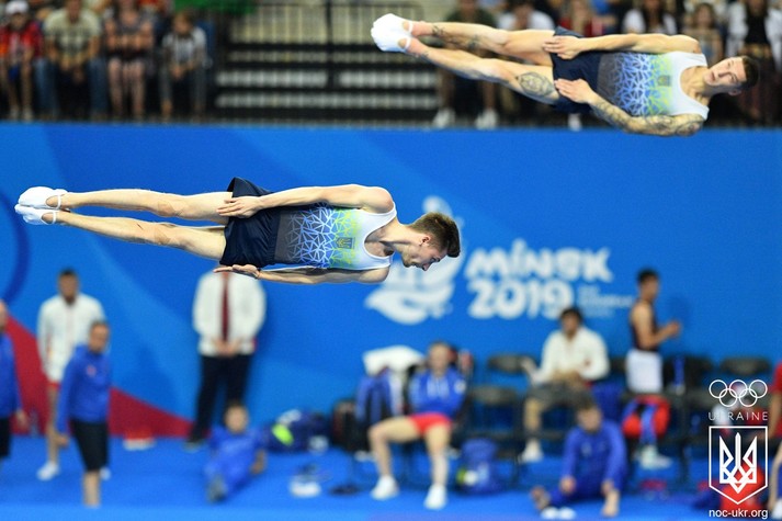 Врешті, за себе і за того хлопця сьогодні постояли інші батутисти — синхронна пара, яку склали 22-річний киянин Антон Давиденко і 24-річний Микола Просторов із Херсонщини. Вони виграли срібло, поступившись тільки полякам Лукашеві Яворскі і Антонові Закревскі. Їм і присвячена ця фотогалерея.