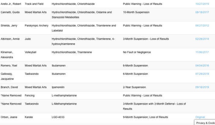 Якщо вірити інформації на згадуваному вже сайті Athletics Integrity Unit, то ні. Нижче подаємо на розсуд читачів три скрін-шоти з ресурсу, на яких поміж понад 500-та допінгових випадків у різних видах спорту виділені саме ті, які пов’язані з гідрохлортіазидом. Згідно з цими даними можна зауважити, що основна частина покарань сягають терміну від нуля до шести місяців і є лише три випадки річної дискваліфікації. Але точно не півтора роки, як у випадку з Табашник. У США в дев'яти випадках з 27-ми дискваліфікація не застосовувалася, а ще у 12-ти не перевищувала шести місяців. Причина вочевидь у тому, що представники закордонних федерацій відстоюють своїх спортсменів, а не покірно визнають їхню провину (щоправда, пан Гоцул стверджує протилежне).