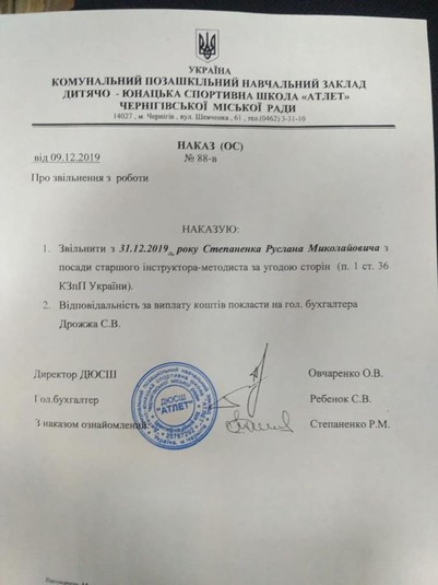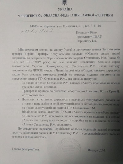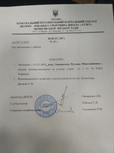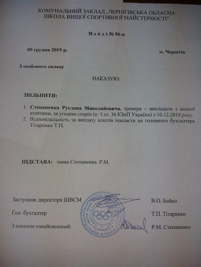 Зауважимо, що після того, як спортивна громадськість сколихнулася, Руслана Степаненка звільнили з посади інструктора-методиста і тренера-викладача з важкої атлетики. Дмитро Ткаченко сприймає це як маленьку перемогу на шляху до позбавлення колишнього вахтера звання заслуженого тренера.