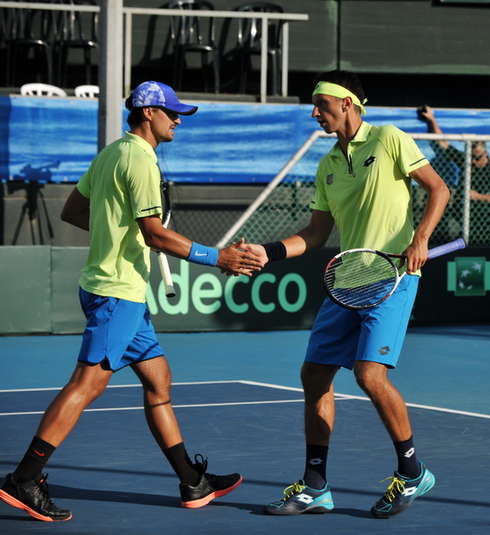 Однак, досвідчені Села та Ерліх зібралися з силами та зуміли виграти на чужій подачі гейм. Після цього суперники обмінялися геймами і переможця всієї гри мав вирішити тай-брейк, на якому українці заволоділи перевагою та повели 2-0. Але при розіграші третього м'яча Сергій Стаховський підвернув ногу та змушений був звернутися за допомогою до лікарів. В цей момент виникли запитання: чи зможе Сергій продовжити гру, а також грати в повну силу? Однак, Стаховський зумів повернутися в гру та допоміг Денису Молчанову довести поєдинок до загальної перемоги!
