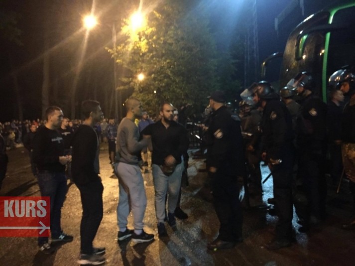 При цьому окремі вболівальники пробували прорватися до автобуса. Правоохоронці відтіснили фанів від автобуса. З правоохоронцями розмовляли представники львівських ультрас, однак від автобуса ті не відійшли.