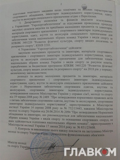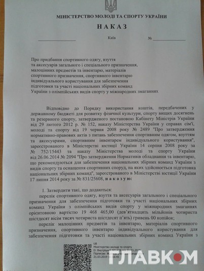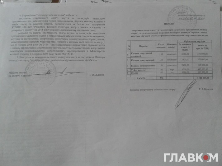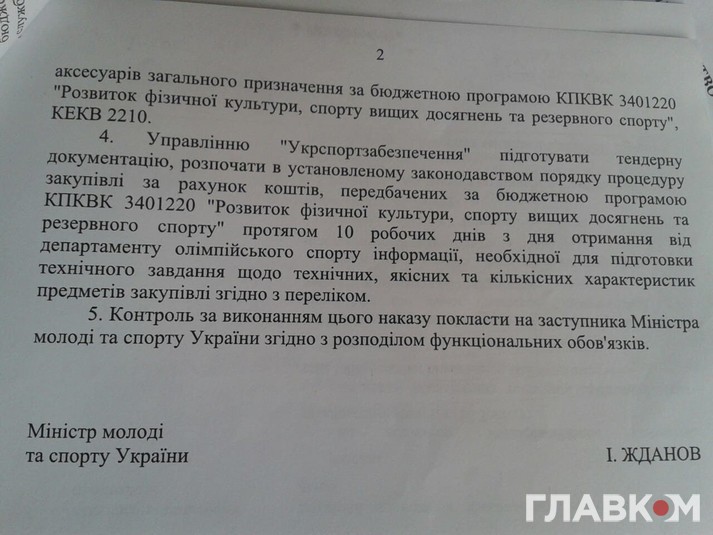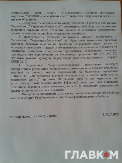 Таких історій є ціла низка. Найцікавіша стосується закупівлі форми загального користування. Наказ на 8 млн. Відповідно до додатків, кожен вид спорту мав свій комплект. Ми провели кілька десятків торгів, за результатами яких вигравала не та фірма, яку бачив переможцем Жданов. Міністр не знайшов нічого ліпшого, як скасувати наказ. Немає наказу – немає фінансування. Ми як установа, яка працює відповідно до наказу Міністерства, змушені були скасовувати торги. Найсмішніше, що скасувавши один наказ, у той же день Жданов видав інший – на ту ж суму і ту ж форму.