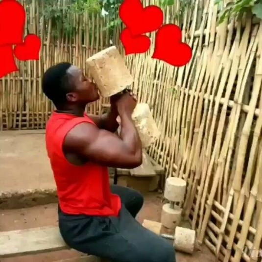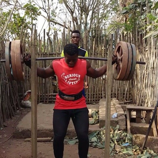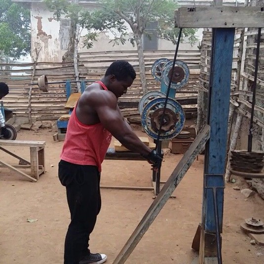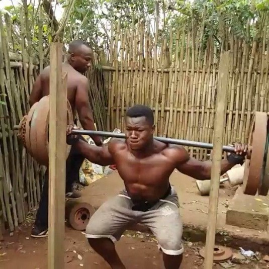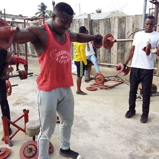 Знайомтеся, це 27-річний бодібілдер Cамуель Кульбіла зі столиці Гани Аккри, який зібрав саморобний тренажерний зал на своєму задньому дворі. Хлопець зробив штанги, гантелі, лавку для жиму і стійку для присідаючи з підручних засобів.