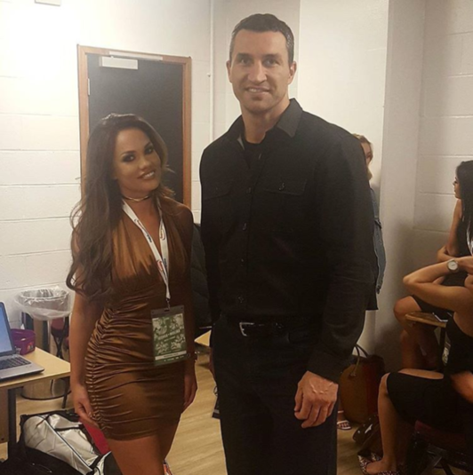 Олександра Усика та Майріса Брієдіса на заходах і під час їхнього бою супроводжували чарівні дівчата − ring girls, які під час самого поєдинку виносять таблички з номером раундів.