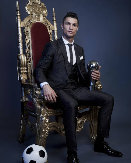 Нападник «Реала» Кріштіану Роналду, який був визнаний найкращим гравцем року, сфотографувався зі своєю нагородою на троні.