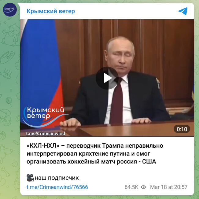 «КХЛ-НХЛ» – перекладач Трампа неправильно інтерпретував крехтання Путіна та зміг організувати хокейний матч Росія – США», – жартують у мережі.