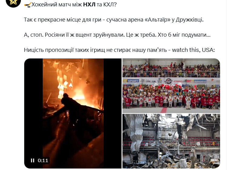 «Нам щойно стало відомо про розмову між президентом Трампом і президентом Путіним. Очевидно, що ми не були стороною в цих дискусіях, і було б недоречно давати коментарі в даний момент», – зазначили в НХЛ.
