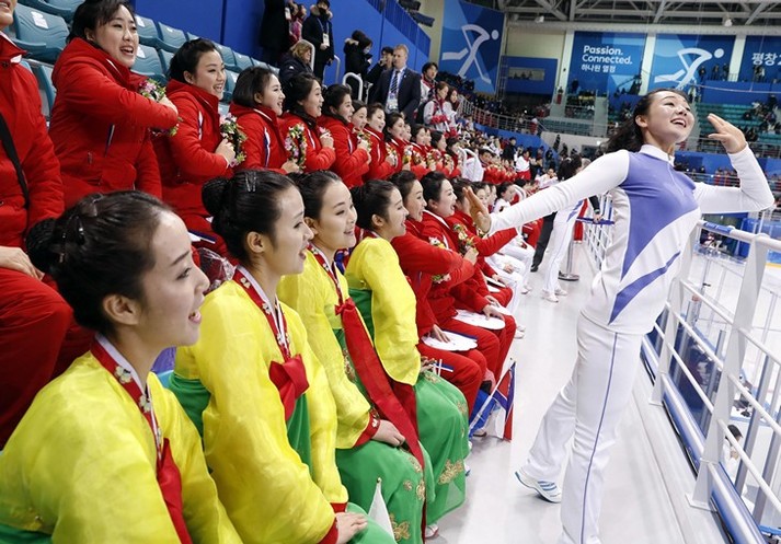 Зокрема, вболівальниці Північної Кореї підтримували жіночу збірну об'єднаної Кореї на хокейному матчі проти Швейцарії.