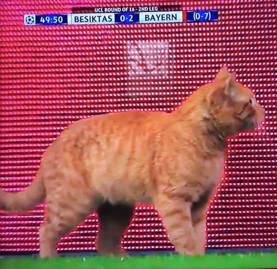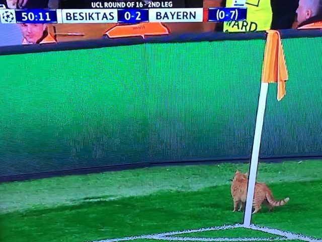 Під час матчу 1/8 фіналу Ліги чемпіонів між турецьким клубом «Бешикташ» і німецькою «Баварією» на поле вибіг кіт