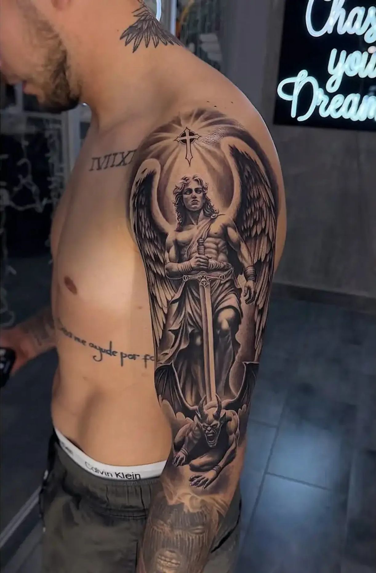 Нова робота прикрасила ліве плече та передпліччя 27-річного футболіста.