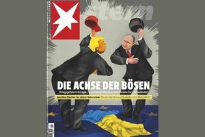 На одній із карнавальних платформ зображено, як американський президент укладає з Володимиром Путіним «пакт Гітлера-Сталіна 2.0», при цьому «розчавлюючи» Україну