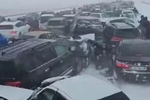У Казахстані майже 100 автомобілів зіткнулися через сильну хуртовину (відео)