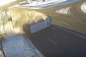 На Троєщині легковик перекинув мікроавтобус: момент ДТП потрапив на відео