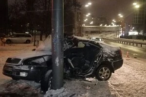 ДТП на Шулявці: за 10 хвилин до комендантської години Skoda влетіла в білборд (фото)