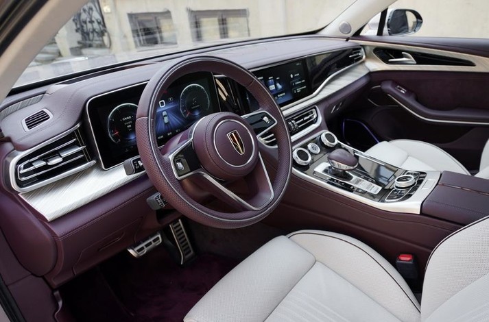 Третій автомобіль, який може з’явитися в Україні, це кросовер Hongqi HS5. Його інтер’єр оформлено в стилістиці Mercedes: два дисплеї діагоналлю по 12,3 дюйми, розташовані під єдиним козирком.
