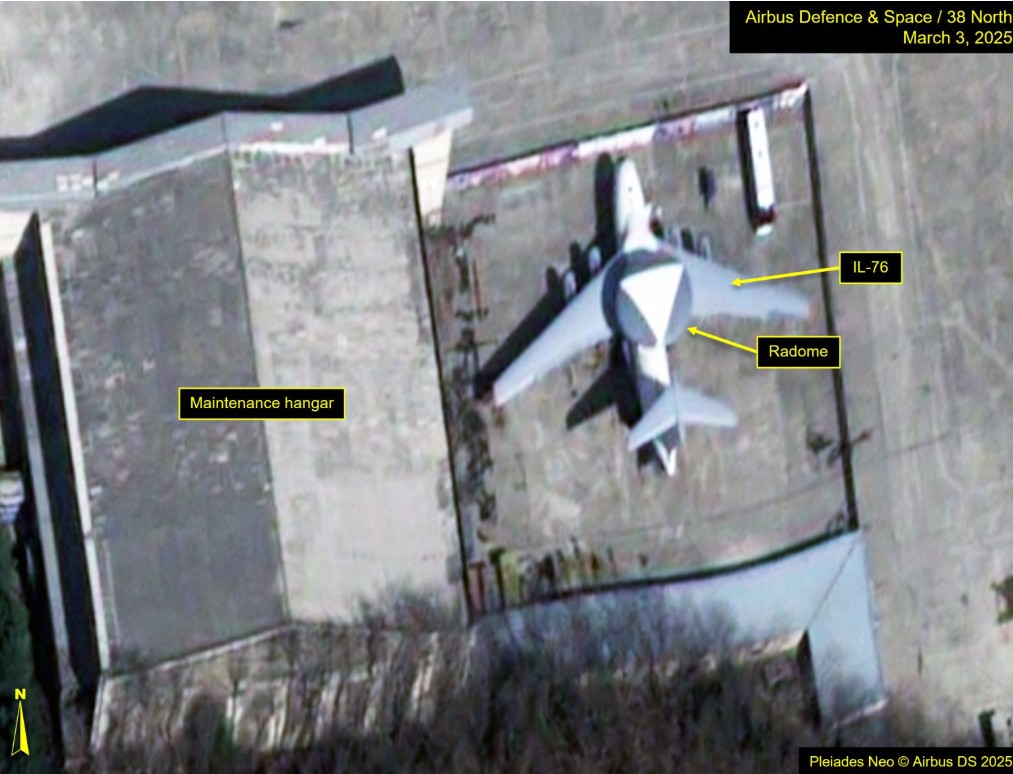 Видання опублікувало супутниковий знімок аеропорту Сунан у Пхеньяні, який 3 березня зробила супутникова система Pleiades NEO компанії Airbus. На знімку видно літак Іл-76 з обтічником антени станції радіолокації, встановленої на верхній частині фюзеляжу.