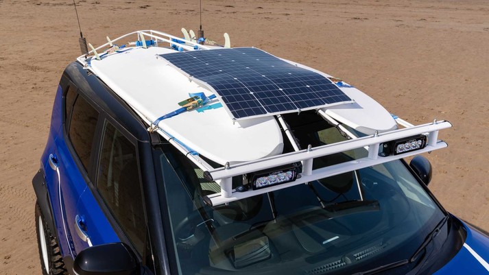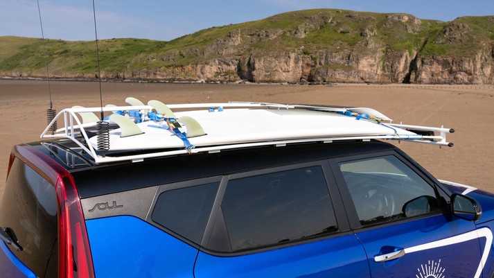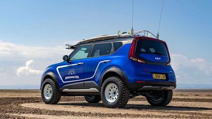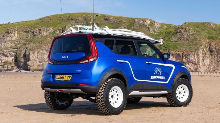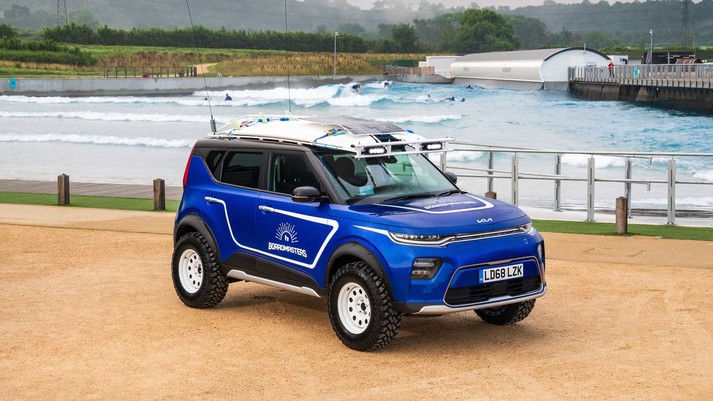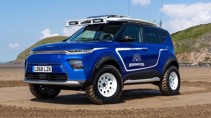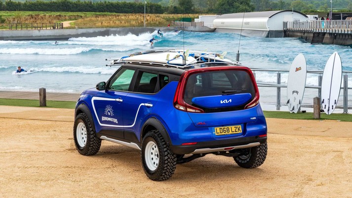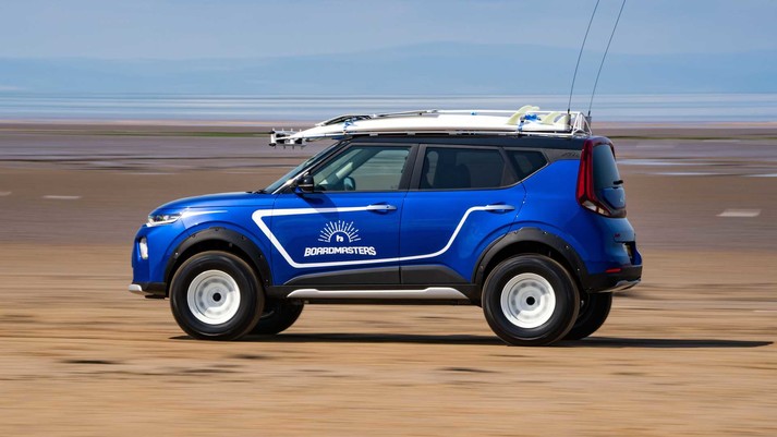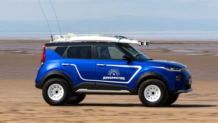 Крім того, Soul EV Boardmasters Edition пофарбований в синій колір з білими вставками і оснащений невеликою сонячною батареєю на даху.
