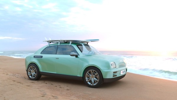 Логотип розташовано спереду і ззаду у елегантної машини. Автор проєкту розповів, що не хотів переборщувати з хромованими елементами, чим зараз грішать китайські і корейські виробники.