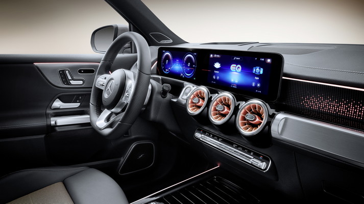 Усередині відмінності між EQB і GLB мінімальні: у електромобіля нова приладова панель і інший інтерфейс недійної системи. Ще одна ознака електричної моделі – бронзовий декор.