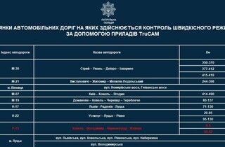 Загалом на дорогах України контроль за швидкісним режимом транспортних засобів з використанням приладів TruCAM здійснюватиметься на 346 ділянках автомобільних доріг. З повним списком доріг, де будуть розташовані камери, можна ознайомитись нижче.