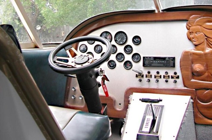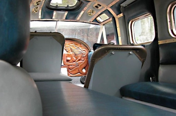 Уздовж салону розмістили лавки для більшої кількості пасажирів, а приладову панель, виконану з натурального дерева, прикрасили барельєфом у вигляді русалки.