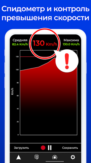 Окрім того, програма підраховує середню, максимальну швидкість шляху, а також кількість перевищень швидкісного режиму. В налаштуваннях також можна включити контроль мінімальної швидкості.
