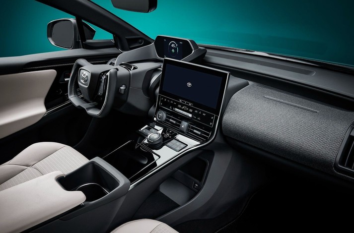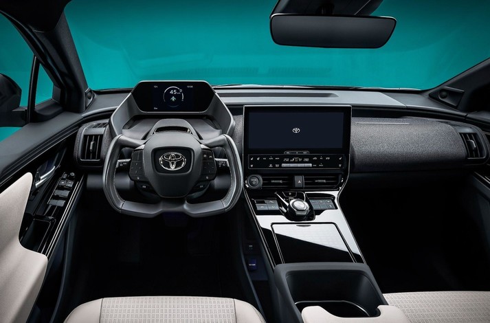 В салоні Toyota bZ4X встановлено Y-подібний штурвал замість традиційного керма. Причому вперше в галузі з колесами він пов'язаний «по дротах». За ним височіє віртуальна панель приладів, а по центру розташований широкоформатний екран мультимедійної системи.