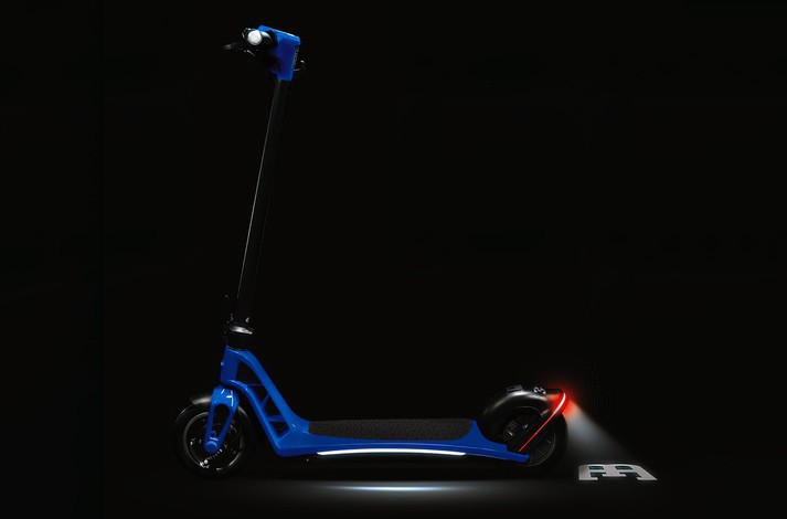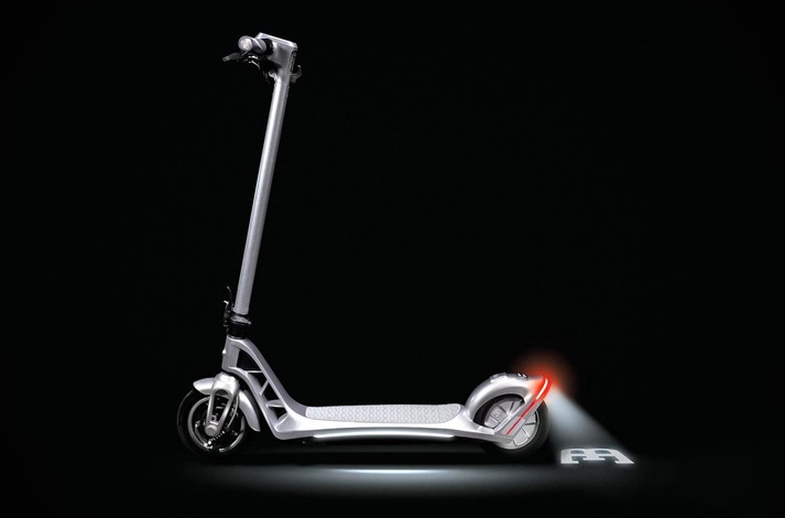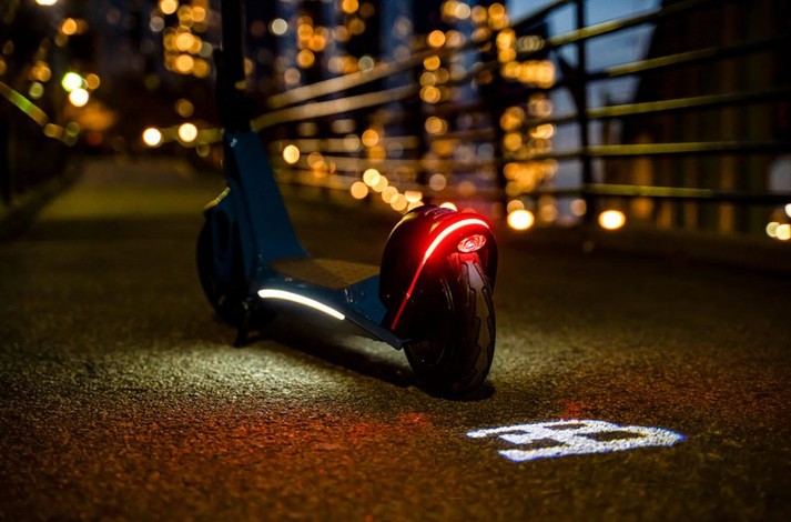 Крім того, скутер оснащений заднім ліхтарем, що проеціює логотип «EB» на асфальт і підніжкою.