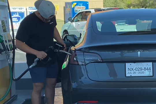 Кумедне відео: водій намагався заправити Теслу бензином