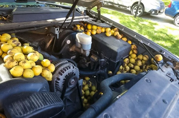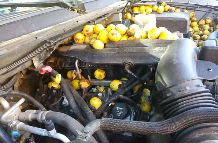 Відкривши капот, американець побачив, що весь простір навколо двигуна доверху заповнене американськими чорними горіхами, які за кольором чимось нагадують лимон.