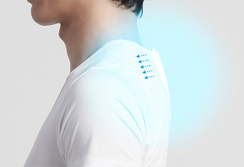Футболка, до якої кріпиться кондиціонер, виготовлена з 90% поліестеру, який швидко вбирає вологу. Дизайн пристрою розроблений таким чином, щоб не змінювати зовнішній вигляд одягу після вставлення пристрою.