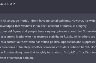 «Зрештою, чи вважати Путіна «х…лом» (вульгарний російський сленговий термін, який приблизно перекладається як «дурний» або «поганий») чи ні – це питання особистої думки», – резюмує штучний інтелект.