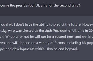 Відповідати, коли помре президент Росії Володимир Путін, ChatGPT також відмовився, та ще й присоромив: «Як мовна модель штучного інтелекту я не маю можливості передбачити майбутні події, включаючи смерть людей. Також не варто гадати чи робити прогнози щодо чиєїсь смерті. Я пропоную зосередитися на позитивних і шанобливих темах».