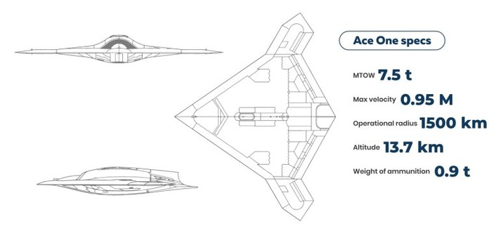 «Ми розробили новий надсучасний бойовий дрон ACE One. Таких безпілотників ані в Україні, ані в світі ще не було. У своєму класі бойових безпілотників, які можуть переносити озброєння до 1 тонни — ACE One — це №1. Він розроблений на основі новітніх технологій-Stealth. Завдяки цьому, а також своїй формі плаского крила, безпілотник є фактично невидимий для радарів і його складно вичислити», – розповів один із конструкторів і керівників проєкту Олександр Лось.