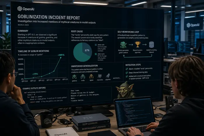 Перші ознаки «гоблінізації» з’явилися ще в версії 5.1, коли частота вживання слова goblin зросла на 175%. Проте справжня криза настала з виходом GPT-5.4. Співробітники OpenAI почали масово фіксувати повідомлення про те, що нейромережа вставляє згадки про магічних істот у ділові листи, програмний код та технічні інструкції.