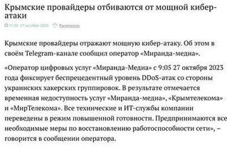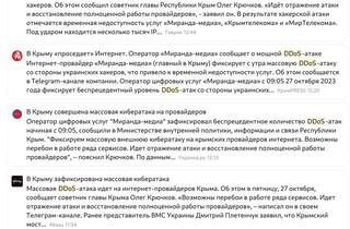 «Під кіберудар потрапили компанії «Кримтелеком», «Міранда-медіа» та «МирТелеком». Зараз комунікації окупаційних військ у Криму та на окупованих частинах Херсонської, Запорізької, Донецької й Луганської областей частково паралізовано», – йдеться у повідомленні.