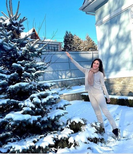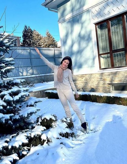 Але напередодні новорічних свят Зіневич не лише дивує сніговими розвагами, а й тішить підписників фото себе красивої.