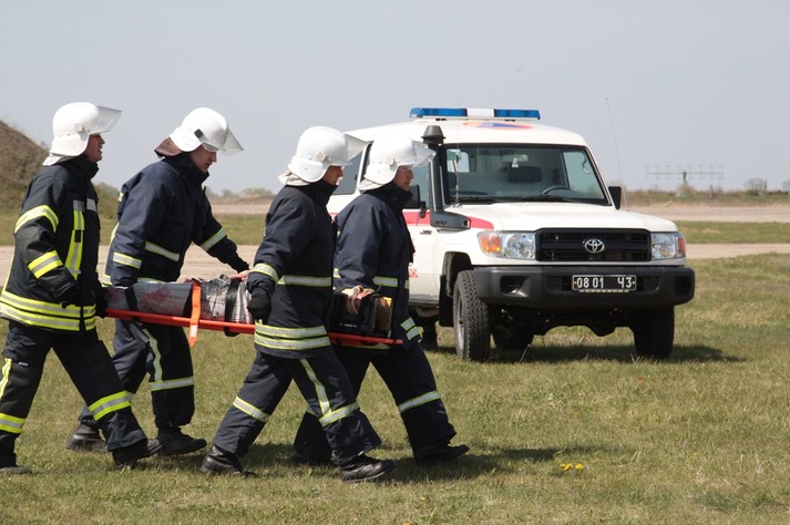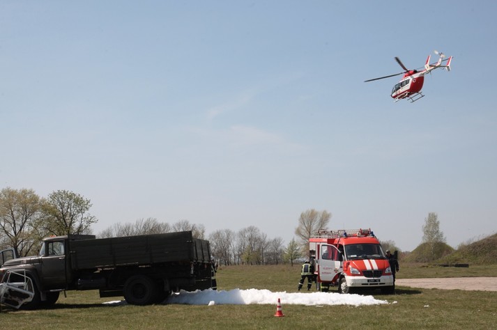 На озброєнні у рятувальників 3 повітряних судна: 2 гелікоптери та літак АН-26 – єдиний медичний літак в Україні. Санавіація провела навчання з евакуацію потерпілих на своєму полігоні на Чернігівщини