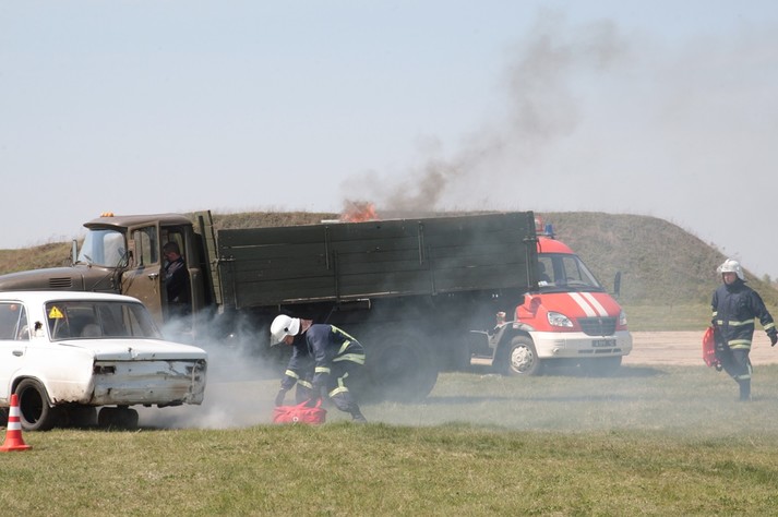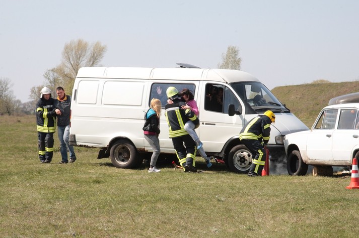 За сценарієм навчання, автобус з іноземними туристами таранить вантажівка.