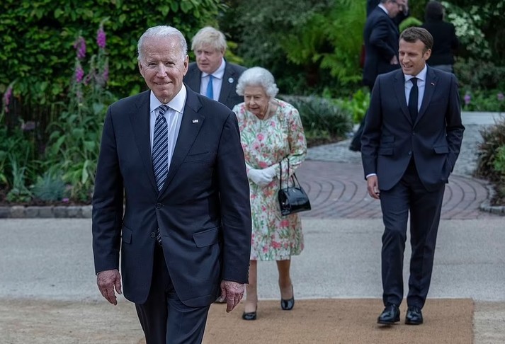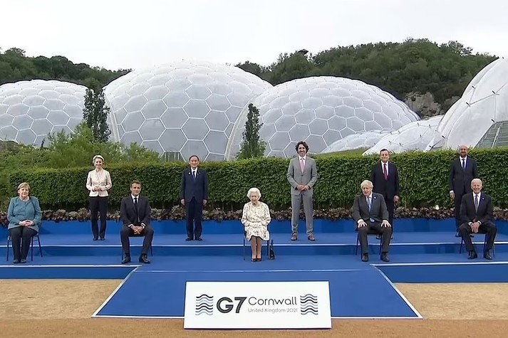 Єлизавета II у п’ятницю, 11 червня, прийняла лідерів G7 – президента США Джо Байдена, британського прем'єра Бориса Джонсона, очільника Європейської Ради Шарля Мішеля, прем'єра Італії Маріо Драґі, канцлерку Німеччини Ангелу Меркель, прем'єра Японії Йосіхіде Суґу, президента Франції Еммануеля Макрона, главу Єврокомісії Урсулу фон дер Ляєн і прем'єра Канади Джастіна Трюдо, – в ботанічному саду «Едем», де представлені екологічні багатства світу. Також там відбулася офіційна фотосесія з королевою, під час якої Єлизавета ІІ розвеселила лідерів G7, пише Daily Mail.