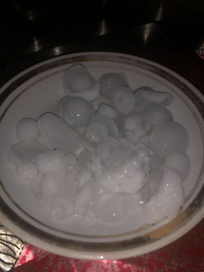 Місцеві мешканці показали світлини граду, яким супроводжувався дощ та блискавки. Спочатку йшов дрібний – розміром з монету, а потім зовсім великий – як волоський горіх.