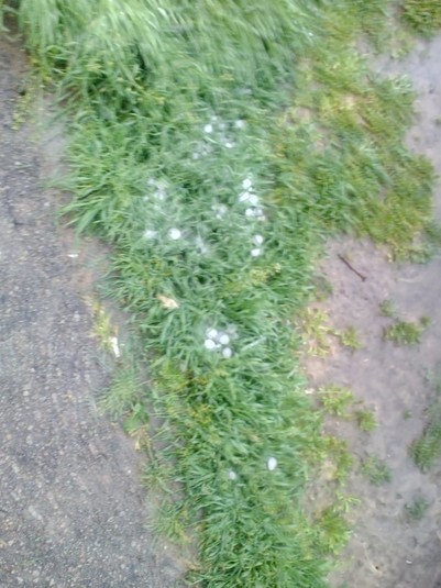 Великий град також випав у Степногірську Василівського району. Місцева мешканка Валентина Анпилова на своїй сторінці в Facebook опублікувала фотографії граду, який вона побачила у себе у дворі. Жінка зазначає, що на вулицю вона вийшла через чотири години після дощу.