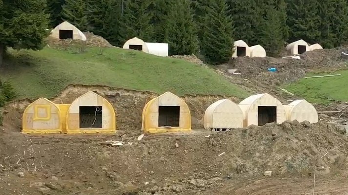 На Верховині, що на Прикарпатті, будують казкове містечко Гобітхіл. Зараз встановлюють основи будинків, опісля їх засиплять землею та засіють травою.