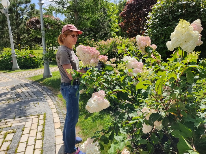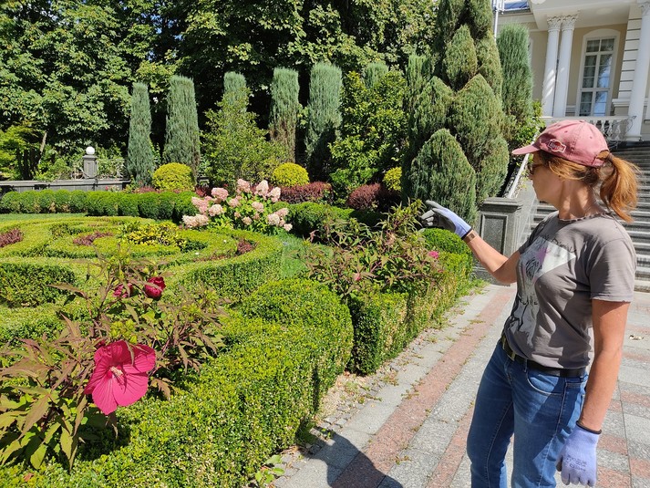 «У неї більше тисячі кущів троянд, які, щоправда, погано перезимували – і це зробило нас практично родичами, бо мої двадцять кущів у селі теж померзли. Що вона фанат гортензій, і ми з нею мало не рачки проповзли кілька соток, обговорюючи варіанти підживлення цієї примхливої квітки. Тому що блакитне суцвіття отримати кожен зможе, просто підливай залізом і все. А ви спробуйте добитися рожевого, малинового відтінків, фуксії! А розмір кетягів залежно від затінення? А рослини-компаньйони?», – пише волонтерка.