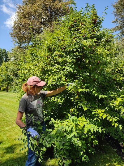 Тамара Горіха Зерня каже, що пані Марина – майстер з фігурної обрізки, і власноруч стриже спіральками і хвилями усі кипариси та інші хвойні на трьох гектарах.