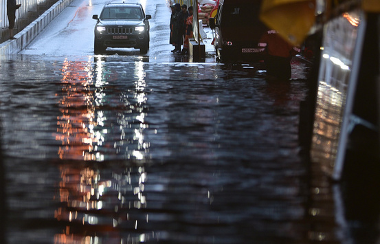 В результаті виходу з берегів річки Яуза в Москві відбулося серйозне затоплення проїжджої частини